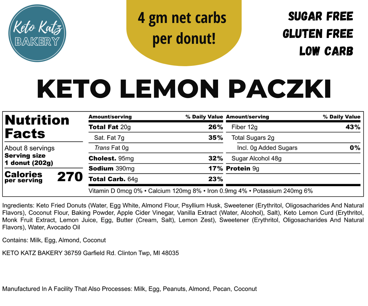 They range from 3-4 net carbs, depending on the flavor, see the nutrition labels below. OH! Btw, each paczki has 13g of fiber in them, that’s half of your daily goals! You’re welcome! lol